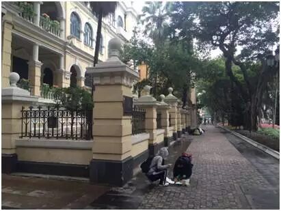 ❸ 12月21日,AIP2015级学生在段玮佳和盛南两个老师的带领下,来到广州的沙面进行了一天的户外课程,主要让学生接触各种各样的材料特质,并以拓印的方式收集素材。