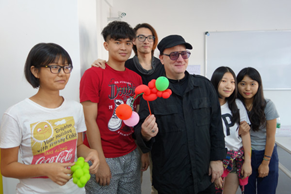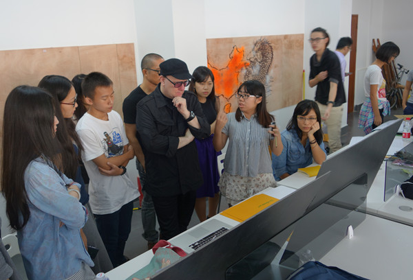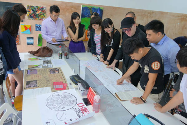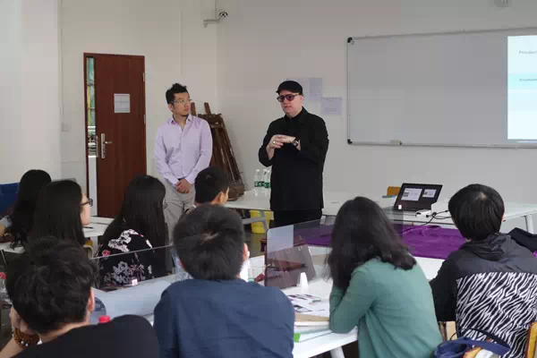 精彩的演讲之后,WALLACE对每一个小组的作品进行了分组点评。同学们都怀着期盼和激动的心情等待着WALLACE的点评。点评过程中,每一组都表现得非常的专注和专业,值得嘉许的是同学们积极参与的态度与认真。许多同学都似乎忘记了语言交流的障碍,用流利熟练的英语与WALLACE亲切地交流,把小组的想法一一细说。WALLACE认真聆听同学们的设计理念之后,非常认真并有针对性地对每一个小组进行点评,给他们一些设计上的专业意见。在获得点评之后,同学们纷纷争取时间对作品进行更完善的修改。