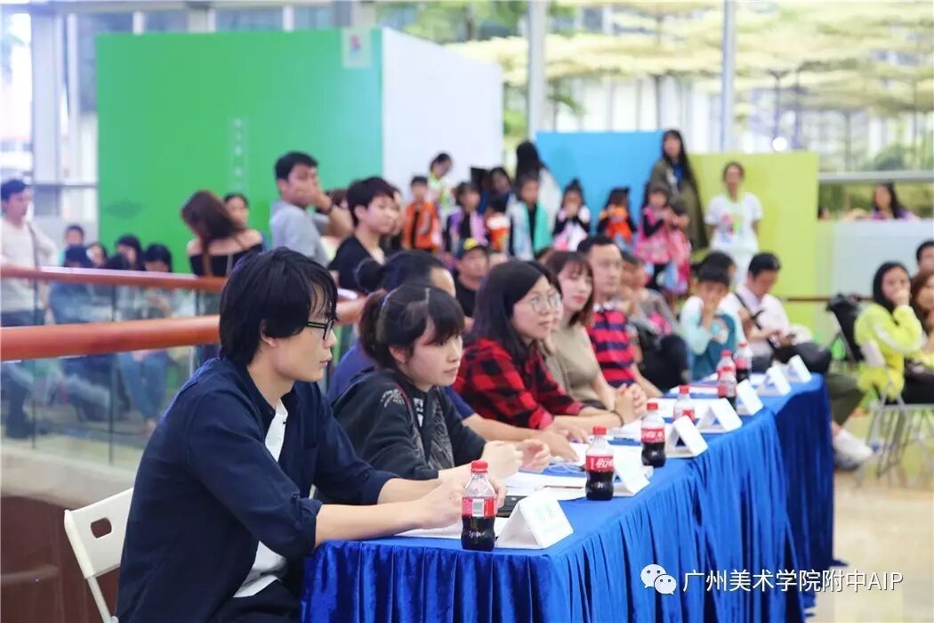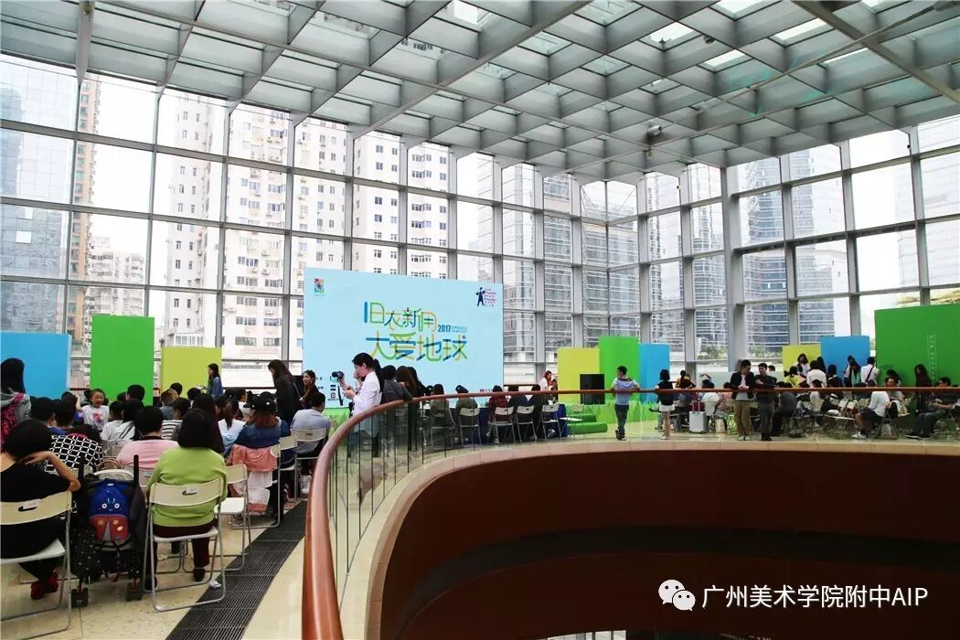 活动场地占了太古汇商场的半层之多,舞台布置得色彩缤纷,充满童趣。现场吸引了不少观众,大家都期待着小朋友和爱心大使、AIP学生天马行空的作品。