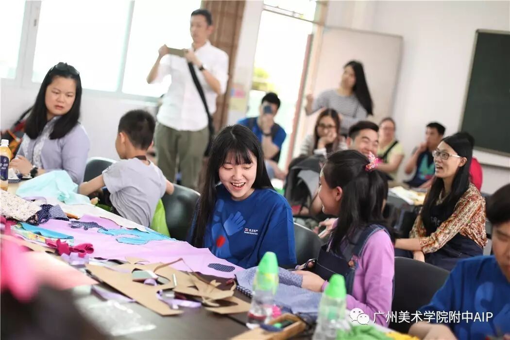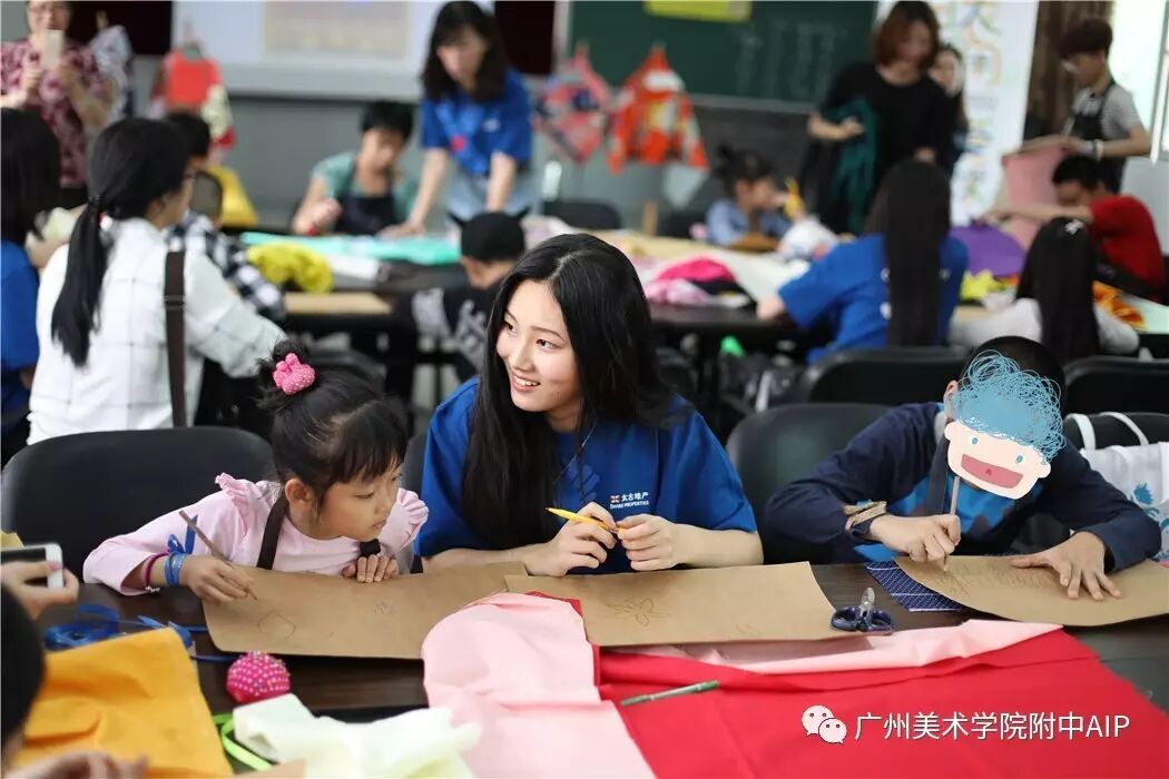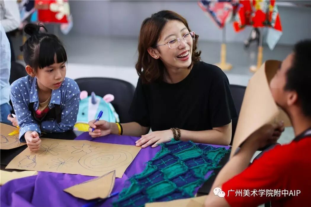 在Zoey老师的专业指导下,AIP的同学们手把手教小朋友画出自己喜欢的图案,以及使用剪刀裁剪布料。大家都在认真、仔细地设计并动手剪裁自己的披肩作品,整个过程顺利而又不亦乐乎。