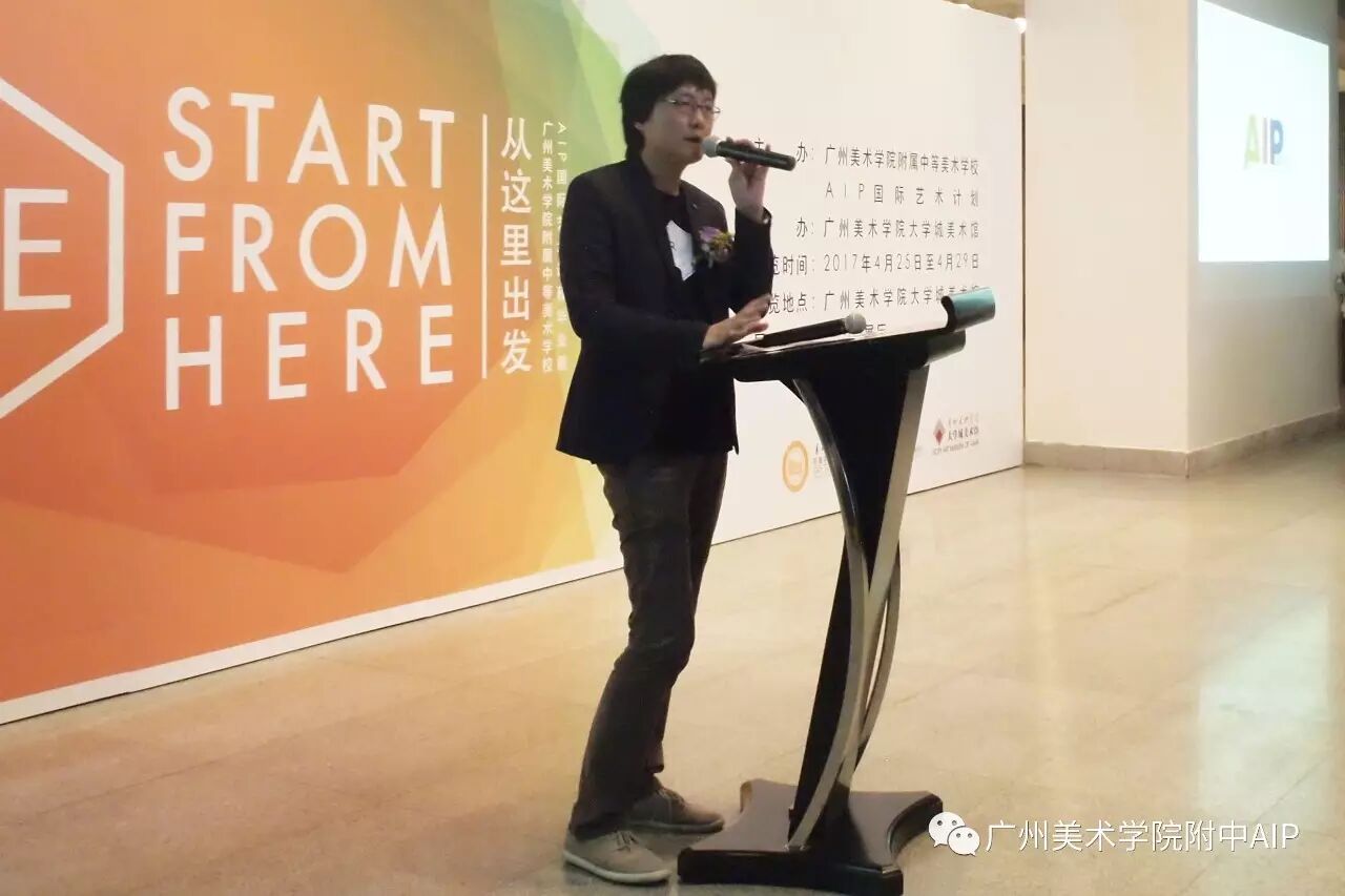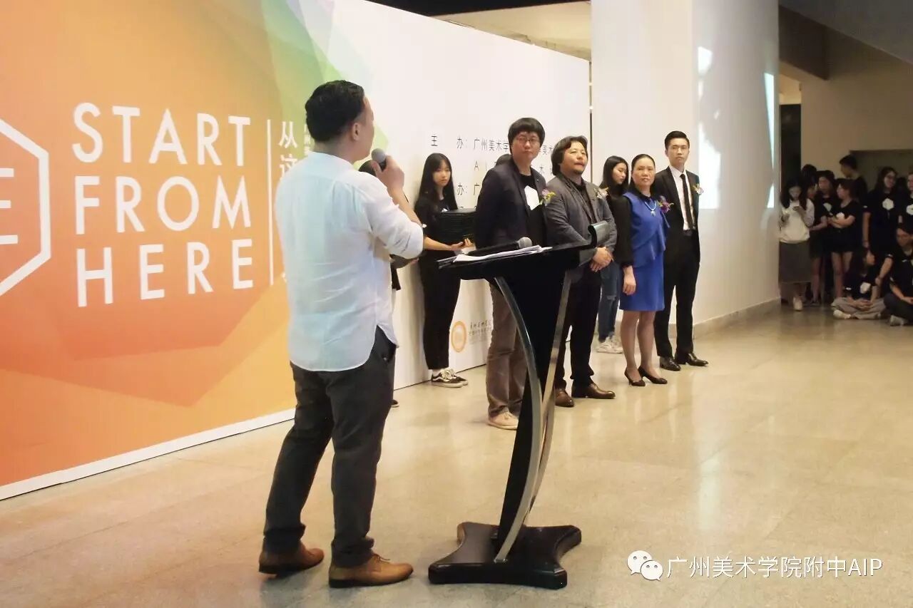 2017年4月25日,2017届广州美术学院附中AIP国际艺术课程“从这里出发2017—RE” 学生毕业展开幕式在广州美术学院大学城校区美术馆举行,本次出席嘉宾有广州美术学院吴卫光副院长、林蓝副院长、广州美术学院教务处蔡拥华处长、人事处宋光智处长、国际交流处刘滴处长、美术教育研究所陈卫和所长、广美附中丁松坚校长、李易玲书记、大学城美术馆左正尧馆长、党支部钟文彪书记、广州美术学院油画系第三工作室负责人何建成教授、大观联合创始人谢俊鹏先生、广大附中AVI美式高中招生总监魏斌女士、深圳梅林中学美术科组长李廷贵教授、杨之光美术中心杨红校长、启邦国际艺术教育林可熙校长、左印国际美术教育陈学燕校长、哥特国际美术吴涛校长、AIP国际艺术课程创始人刘昕老师、AIP广州中心负责人周一凡老师、附中AIP全体师生及学生家长。
