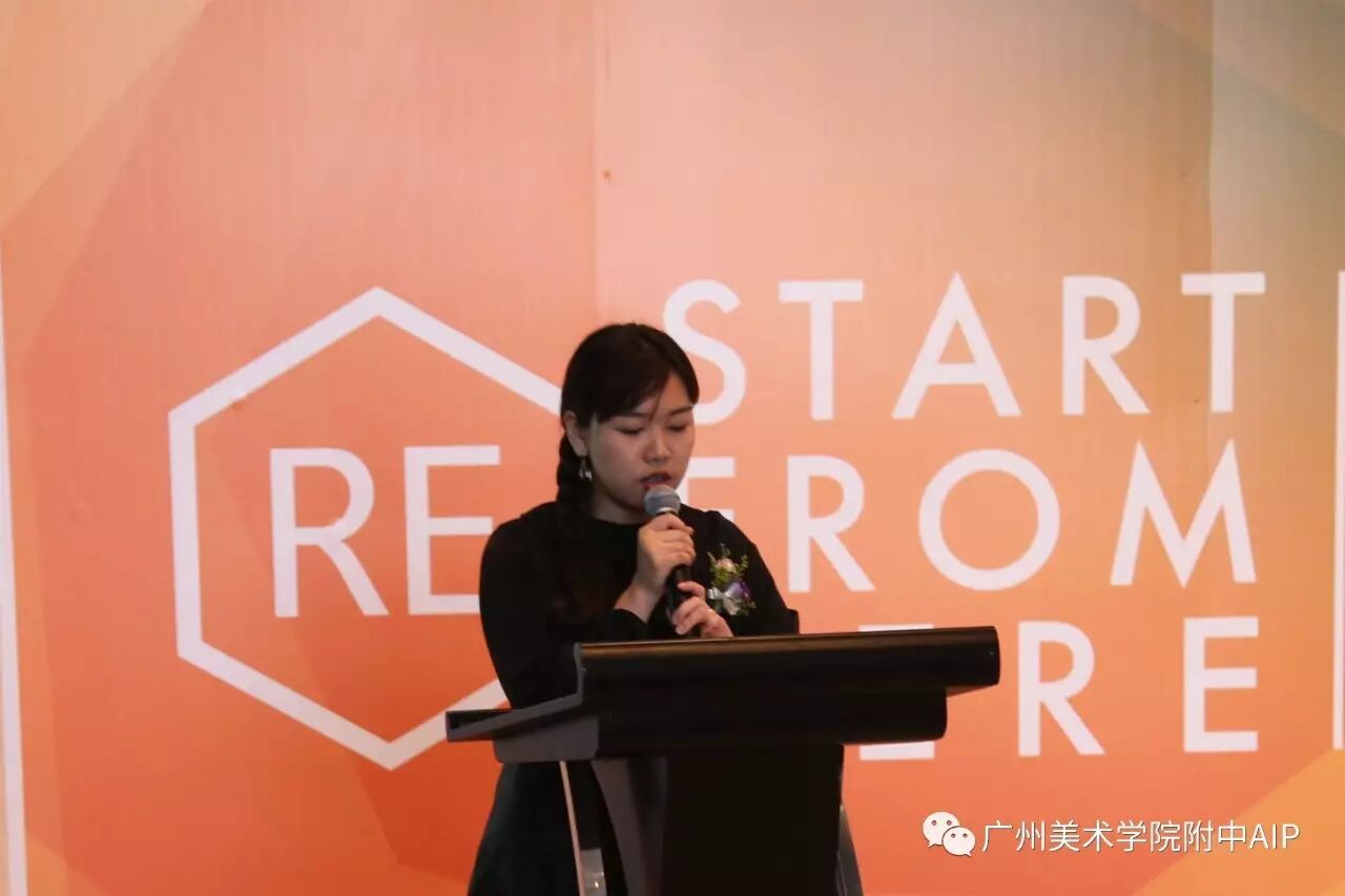 毕业典礼的开场,广美附中丁松坚校长为全体学生们致辞,他表扬了AIP国际部在艺术教育上,立足中国文化教育环境,为培养更具国际竞争力的,适应国际化发展的创新型艺术人才所做的坚持与努力。同时,丁校长也提到了较前两年不同的是,此次毕业展中的高中学生们经历了改革后的全新的AIP国际艺术高中课程体系,这是AIP不断探索与挑战自我的表现。丁校长祝愿即将毕业的65名同学,在未来充满未知与坎坷的道路上,不断重塑自我,突破自我。