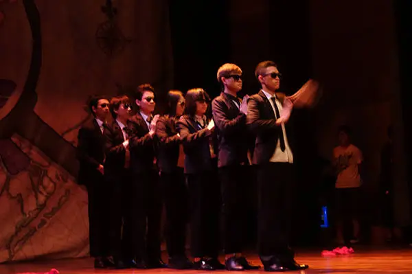 AIP为了这次迎新晚会,分别由13级和14级的B班的同学准备了丰富的节目。 14级以一曲优美的“月半小夜曲”作为他们的表演节目,由四位男同学演绎这首既悦耳又经典的歌曲。另外有充满创意,动感,震撼力十足的表演,来自13级同学的一个团体舞蹈。表演中还融入了说唱元素,伴随着整个团队的节拍,这首”女王摇滚“让全场气氛high到了极点。