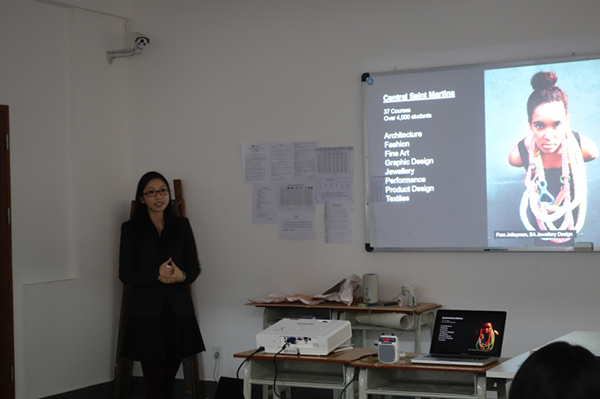 11月6日,英国伦敦艺术大学UAL-University Of The Arts London广州办事处的吴老师和Ken老师到访AIP本部,为2013级的同学及预科班的同学介绍了UAL的各个艺术专业及伦敦校区的一些情况。吴老师着重详细地和学生描述了伦敦的艺术氛围及生活环境。并现场为学生们就如何选择适合自己的专业进行了分析与引导。