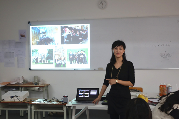Yvonne Yan老师给预科班同学们介绍大学校区和择校优势。