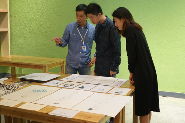 专业主管苏若山老师、专业课陈树强老师、郑梦婉老师指导分析学生作业。