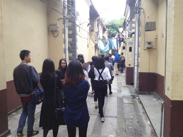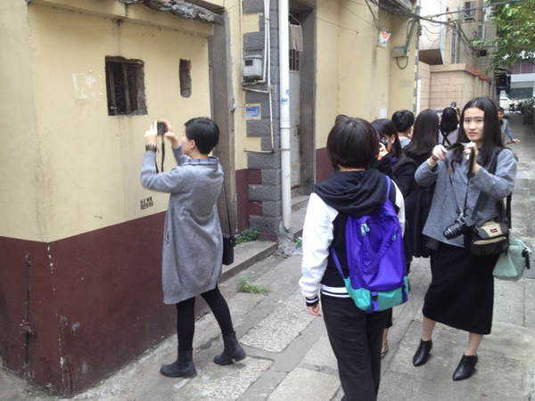 13级学生在苏老师的带领下穿街小巷拍摄自己的摄影题材。