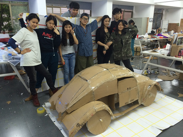 13级部分学生在自己设计完工的模型设计作品前与Carol老师合影。