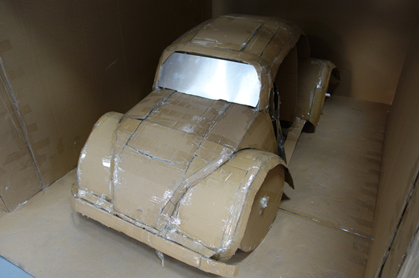 第二部分:高二的学生利用预科班学生所设计制作的汽车模型,为其设计一个车库,这个任务是要学生去考虑出了建筑结构以外,还需要考虑它如何才能配合预科班的同学们制作的汽车,无论是在外观上还是在空间当中。车库的模型也是按照真实大小的一半来制作的。
