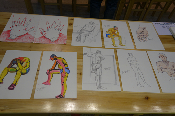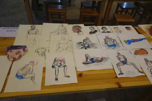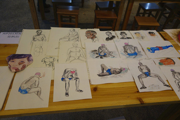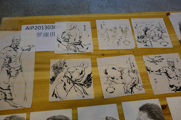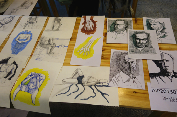 课程观摩的目的是为了让学生掌握一定的展示展览经验,通过互相观摩交流明确自己作品的价值,同时也发现需要改进的方面.大部分学生在最后的十张速写中摆脱的传统的速写模式.积极调动感受,不断尝试新的材料,新的表现语言.并且形成一个系列的作品.将自己的作品通过这个平台展示,对学生现阶段是一种非常好的鼓励。