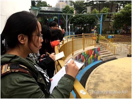 2015年12月8日,AIP专业教学组组织AIP2015级学生到广州越秀区儿童公园,为12月份的“绘画表现”课程做准备,本次课外搜集活动由杨景方,谢少玲2位老师负责。