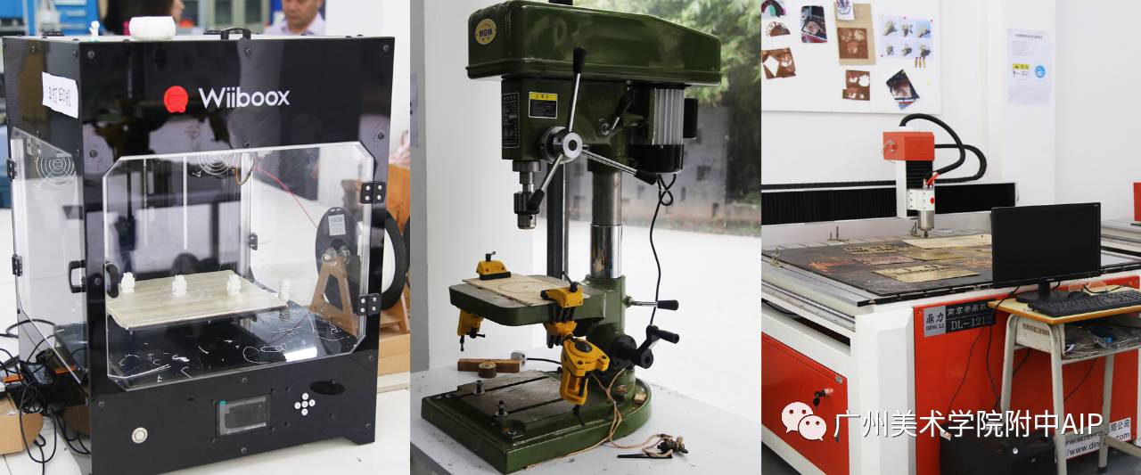 「左:3D打印机、中:台式钻床、右:大型雕刻机…
