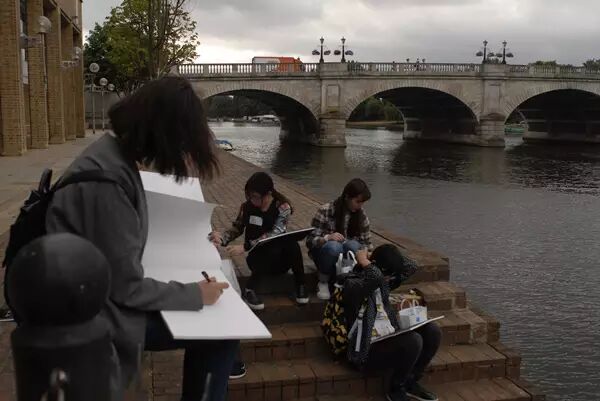 中午吃饭时间到了,午餐就在金斯顿大学的食堂用餐。虽然菜式不多,但是味道却还是不错的。到了下午,同学们来到了户外进行写生活动。老师带着大家在金斯顿大学附近的街道和泰晤士河边上写生 。放眼望去,典型的英国风光尽收眼底:颜色分明设计典雅的古老建筑群,平整干净的石板路,还有休闲而养眼的小咖啡厅。尽管天气还是一如昨天般的阴冷,风还是一样的大,但是却丝毫不影响大家在课程结束后到附近大型商业中心shopping和用晚餐的心情。