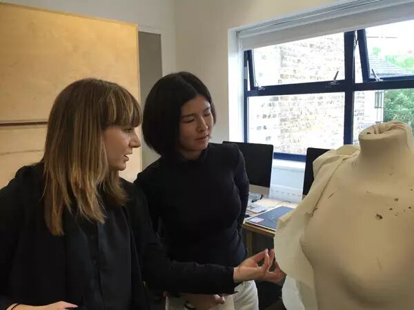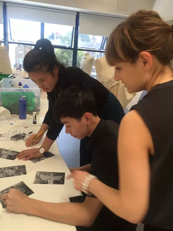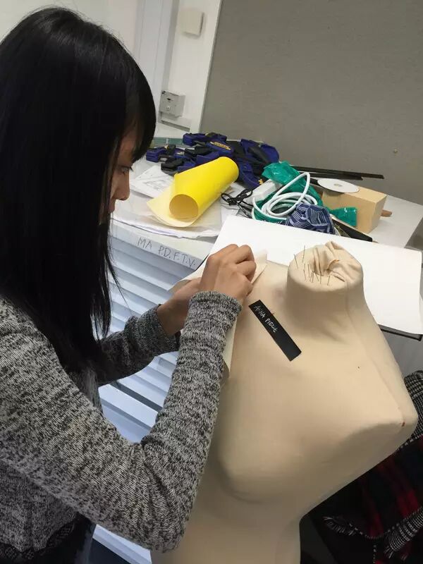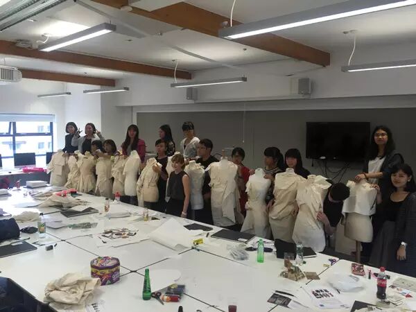 7月16日早上,来伦敦5天来终于盼来了大好晴天,温度在最舒适的26度左右,伴随着微风,广美附中AIP国际部的同学们来到金斯顿大学的服装工作室开始期待已久的实践课程。Emma老师要求同学们将昨日完成的设计图,在人台上立体地制作出服装小样来,学生们在这个过程中从二维的思维角度转变到三维,了解到设计在实践中会遇到许多的实际问题,需要考虑的细节也更加多了。学生们以自己的角度,自己的方式稚嫩地进行着服装打版,Emma老师也在和各个学生进行指导和探讨,并将每位同学的打版都拍照记录并打印,发给学生并让他们根据自己做的小样照片,在新的A2纸上再次思考与设计。