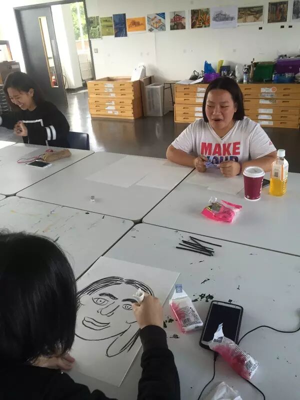 在金斯顿大学学习的这几天当中,我们学习了建筑设计,服装设计和纯艺术,今天我们学习的就是纯艺术,老师让我们用不同的工具用不同的形式在短时间内快速画人脸,可以不用像但是一定要有特点。并且用最放松的心态去绘画,无拘无束,追求自由的绘画心态。我的感受是:这种学习的过程很棒,不用注重细节不用想太多,而是把自己的第一想法随意的画出,你可以很疯狂也可以随性,展现出自己最独特的个性。