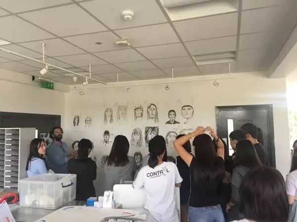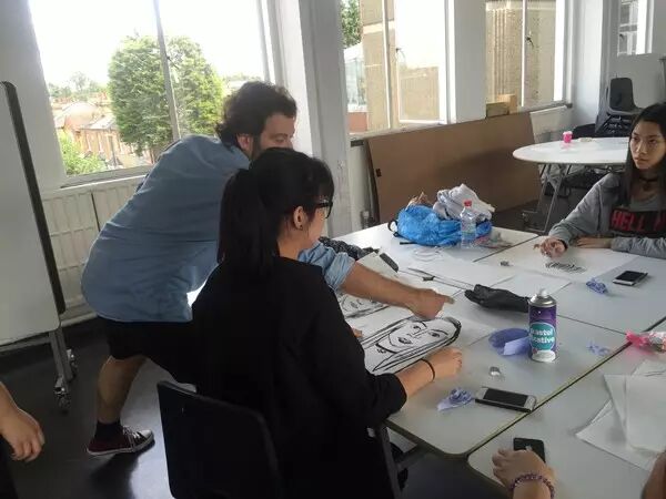 今天是7月17日,持续美好的晴空万里。与往常一样,清晨8点,同学们神清气爽从寄宿家庭出发,前往金斯顿。今天是同学们在金斯顿大学学习的第五天,也是我们在大学上课的最后一天。插画师Paddy是这次纯艺术课程的老师。一进工作室,老师便让学生们按照已经安排好的座位就座,当同学们都纷纷坐下后发现这些位置安排的用意,每两人面对面就座,学生们今天早上的任务便是2人一组,互相观察,用绘画的方式描述对方。