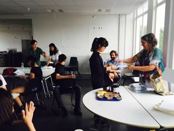 在同学们为拿到毕业证书感到自豪的同时,也开始感伤这是在金斯顿最后一天的学习,尤其对陪伴同学们5天课程的两位中国助教感到依依不舍。两位助教在同学们临行前与大家围坐在一起,分享他们在伦敦学习艺术的生活点滴以及经验之谈,同学们都仔细聆听,争先提出各自的疑问。最后,同学们在金斯顿大学门前铺满金黄落叶的林间大道上合影留念。