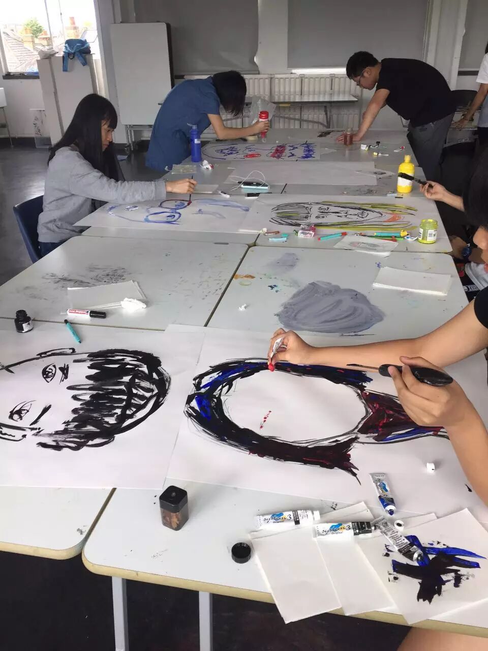 7月17号,今天主要是进行的是纯艺术课程。进行一个画脸的课程,首先是看着对面的人画下他的脸,然后再是看着对方的脸不看纸画,再是用左手画,再是只看纸,不看对面的人画,相比之下,第一张显得去吃紧张,而后几张却显得如此奔放,自由,放松。下午还是利用上午的东西来进行一个创作,是指轮流着的换座位,然后换不同的人画,当然这其中也有很多不同的材料去进行使用,蜡笔啊,色粉笔啊,炭笔啊,胶带简单,丙烯颜料啊等等很多的一系列东西。在这些的基础之上,有进行了最后的作品,一张很大的作品,同样也是选择你自己喜欢的不同的材料去进行一个最后的创作。首先要具有对方的特征,对方不同于别人的特色等等。最后,这是在金斯顿大学学习的最后一天,当地的老师给我们准备了很多好吃的有英国特色的零食,并且为我们颁发了毕业证,并且当地的老师兼助教给我们分享了一些他们当时考取学校时的一些经历以及一些建议,还有关于英国的一些东西,消费啊文化什么的。最后的总结就是,在这么多天的学习当中,有知道国外艺术学习的共同的一点就是。自由!奔放!放松!往往在最放松最自由的时候你做出来的作品是最好的,是完全不带有任何其他夹杂情绪的。所以,这几天学到很多,也懂的很多,这些东西是在书本中或者其他的人口中所无法获得的很重要的经历!