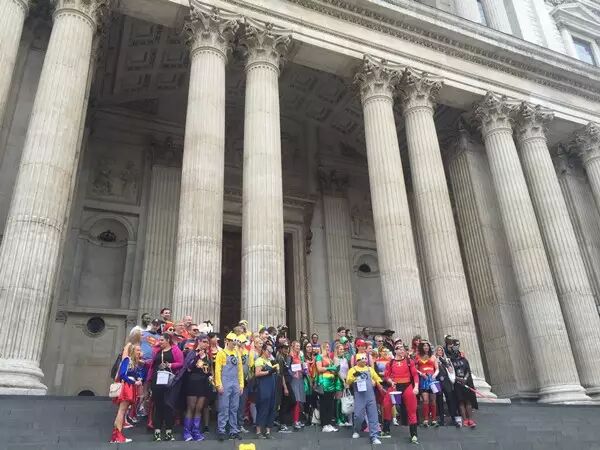 今天上午是去了圣保罗大教堂。圣保罗大教堂最被大家所知的事件应该就是查尔斯王子和戴安娜王妃结婚的地点吧。一进去,你完全就会被整体的氛围震撼并且感染到。那种壮观,宏伟是你所想象不到的,甚至可以用金碧辉煌这个词语来形容圆顶的壁画。金光闪闪。极为震撼。圆顶和穹顶又是两个不同的概念。穹顶上面的设计也是别具一格。据说,穹顶的塔顶距离地面的高度是365英尺。是设计者雷恩故意设计的,代表着一年365天。也是佩服的不行。另外今天在外面合照的时候碰见一个相当美丽而又相当有力量的妹子,完全不需要支撑的倒立。所有人惊呆了!不过,我们很开心啊,因为她用她特别的倒立方式跟我们合影!