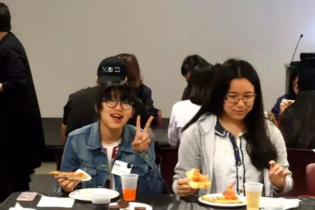 中午,学校为我们准备了披萨,并安排我们和Otis的同学们一起吃午餐,Otis的学生来自五湖四海,有来自中国的,韩国的…其中还有一位是AIP的毕业生陈族锐,他2015年入读Otis,大家见到学长都很激动,他跟大家分享了自己在海外的学习经历,并祝愿学弟学妹们可以顺利申请到自己理想的大学。