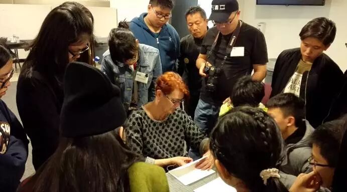 午餐后,知识渊博有着高超手工技术的Rebecca Chamlee 老师为大家讲解书籍装帧设计和技法,并和同学们共同探讨书籍装帧的艺术。Rebecca Chamlee 是平面设计的副教授,她对书籍装帧非常大的兴趣,客户包括Capitol Records,Coors Brewing Company ,Creative Artist Agency , Chronicle Books等等。老师要求同学们独立制作由这4天的学习及创作经历所组成的“搜集之书”。